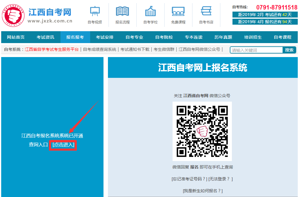 1、考生進入江西自考網網站,點擊首頁上的考生服務平臺,如下圖:
