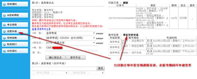 3) 只有在變更申請開放期間才允許申請變更報考信息,請注意開放時間