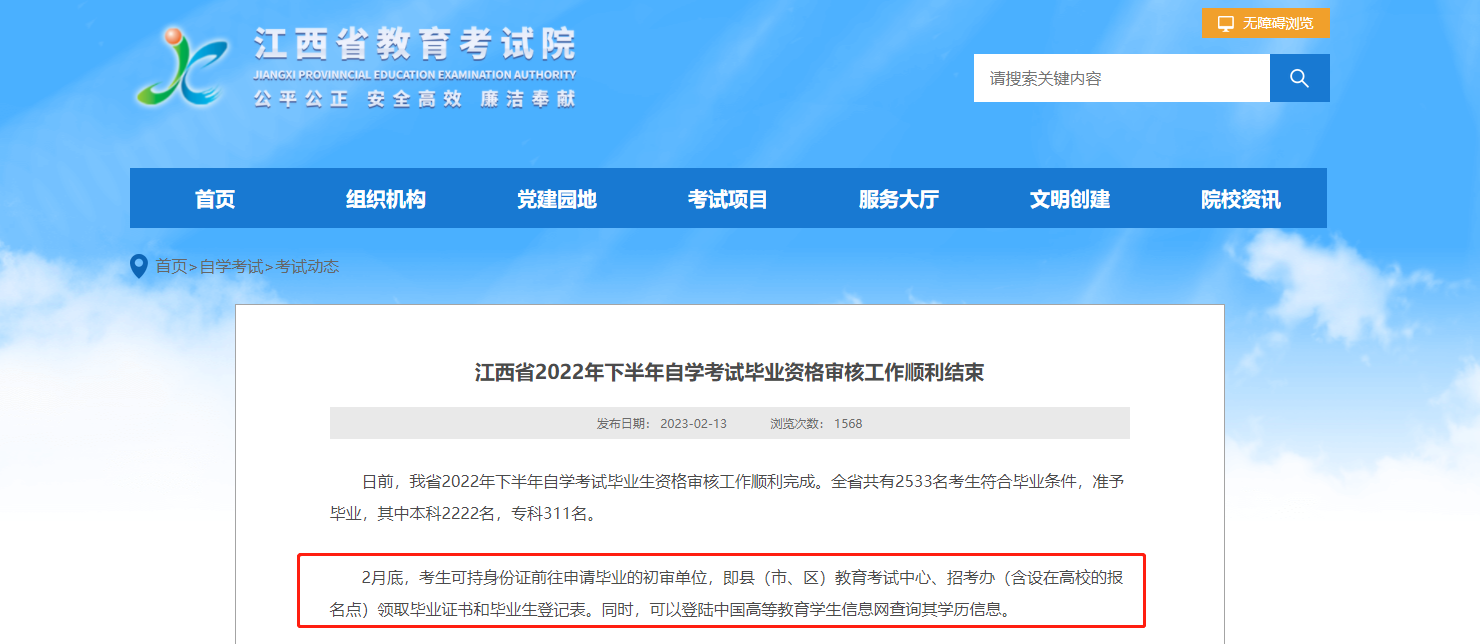 2022年下半年江西自考畢業(yè)證領(lǐng)取時間