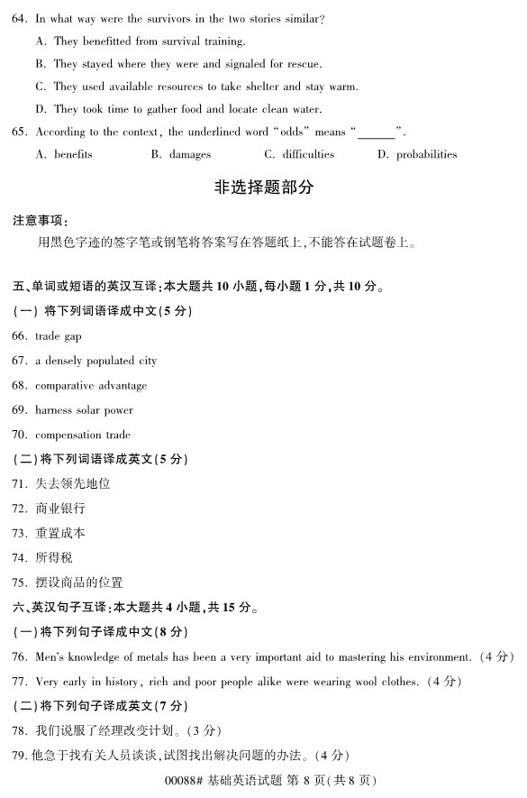 【導讀】很多想要報考江西自考的考生想知道,江西自學考試英語試卷,下面江西自考網(wǎng)整理出關(guān)于江西省自考英語試卷真題僅供考試參考。