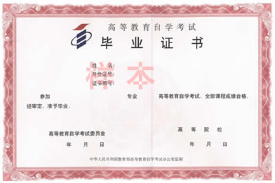 3、該式樣的高等教育自學(xué)考試畢業(yè)證書從2003年開始使用,不適用于2003年以前的自學(xué)考試畢業(yè)生。