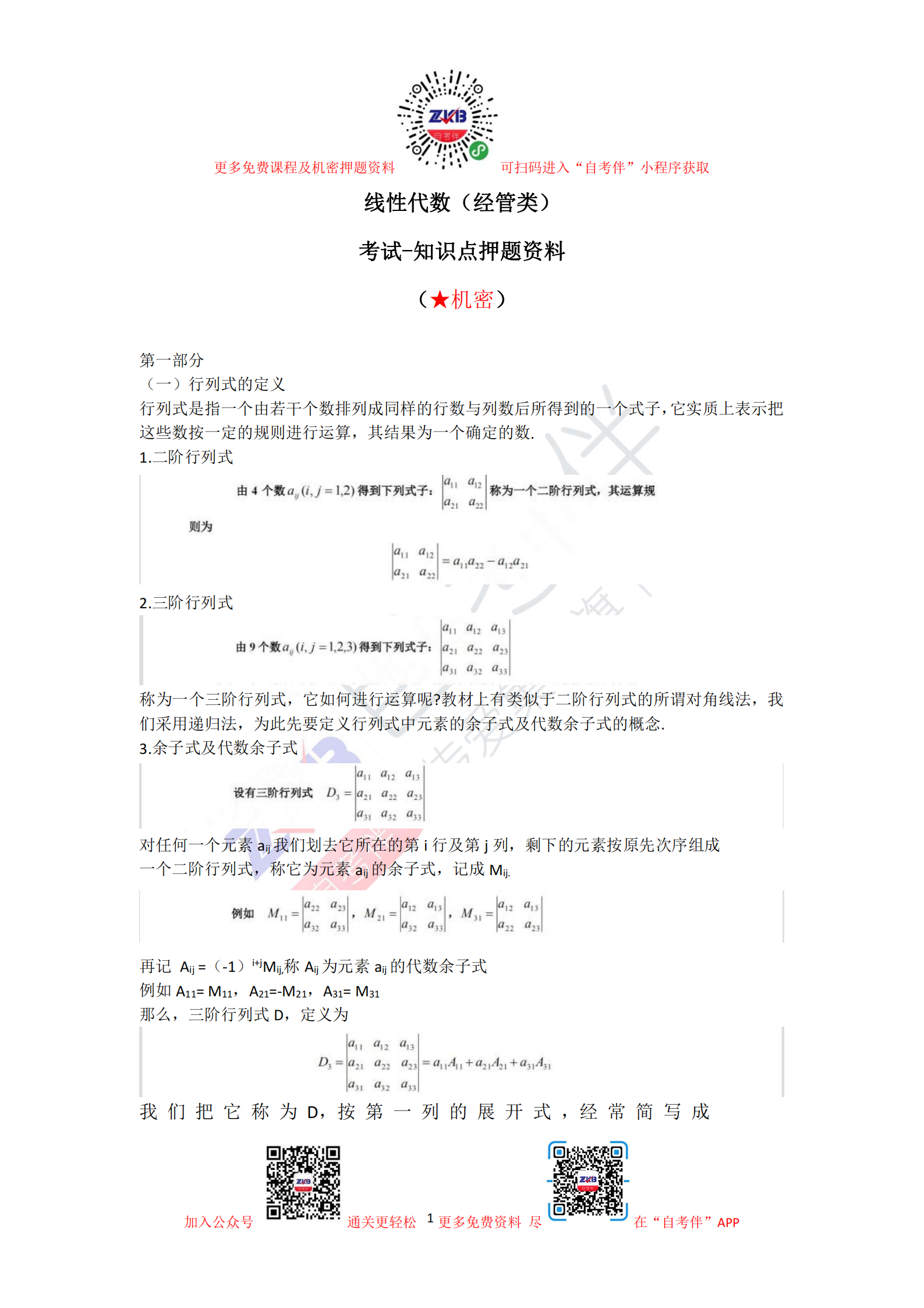 江西自考04184線性代數(shù)(經(jīng)管類)押題資料