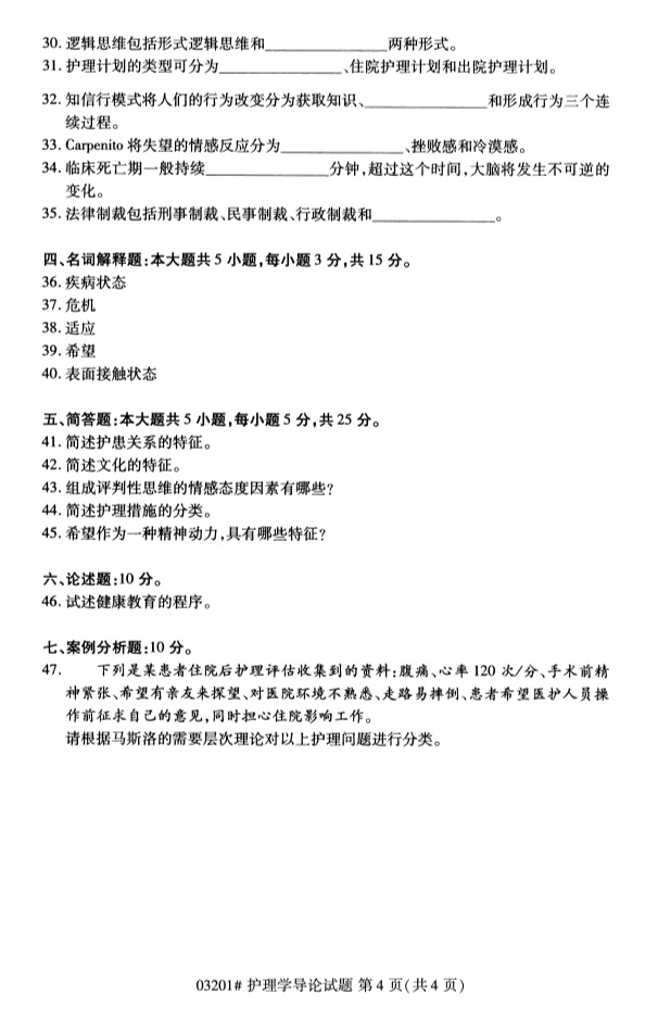 全國2019年4月自考03201護理學(xué)導(dǎo)論試題