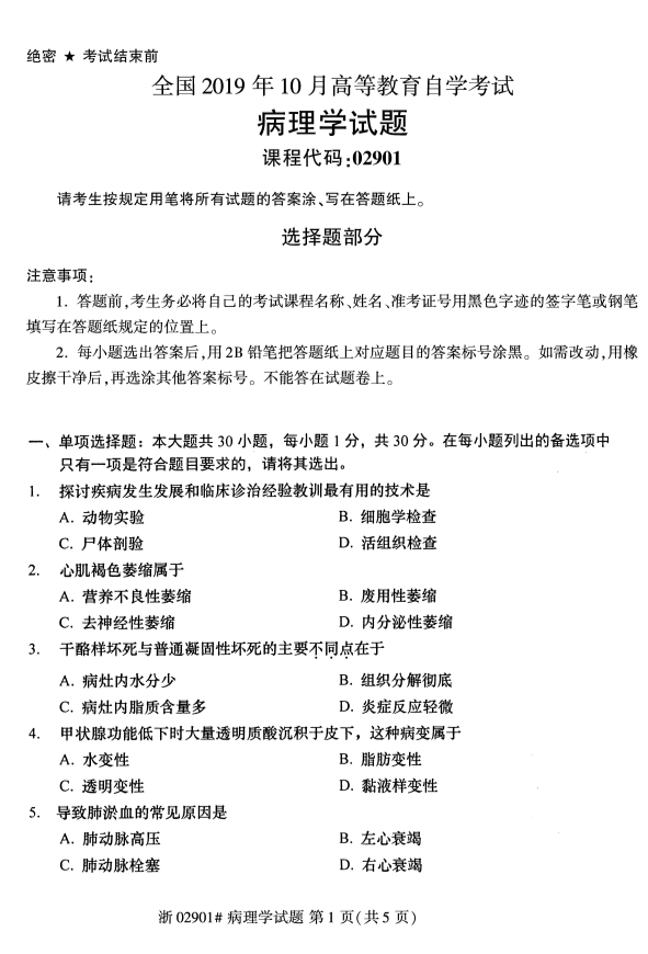• 所在位置:江西自考網(wǎng) > 自考試卷 > 全國2019年10月自考02901病理學試題