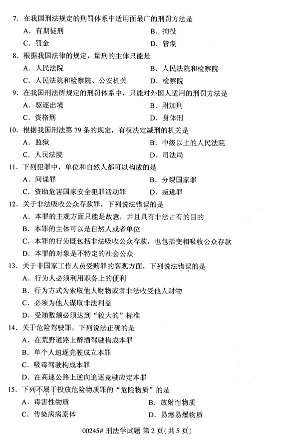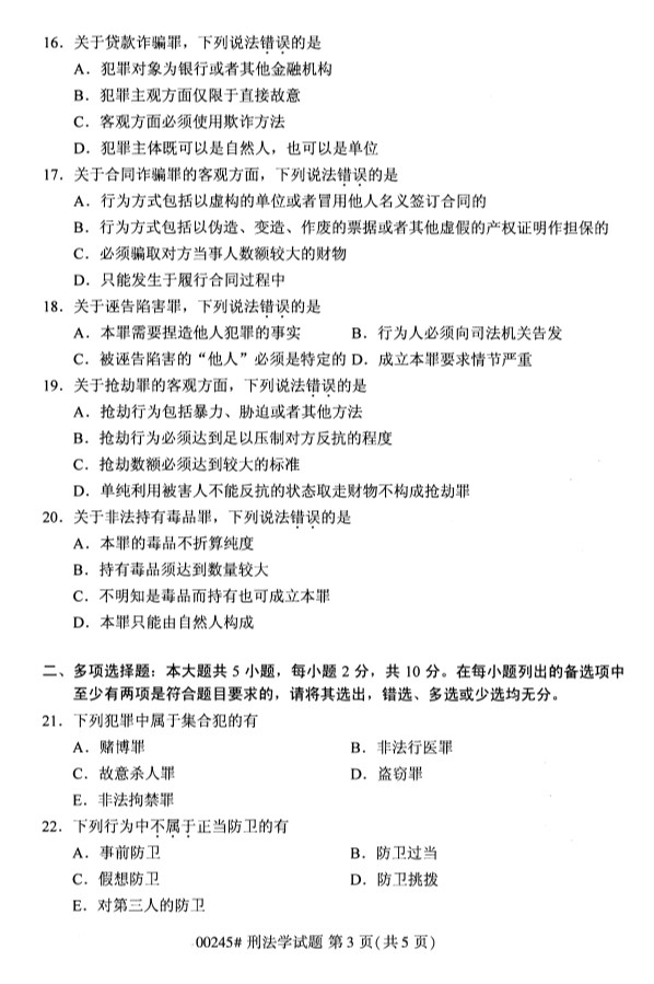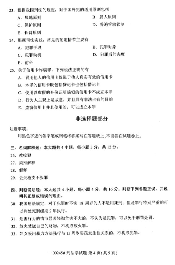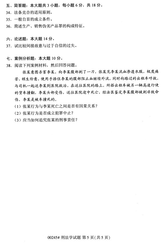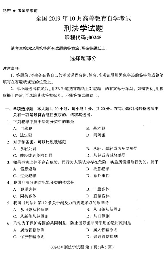 全國(guó)2019年10月自考00245刑法學(xué)試題