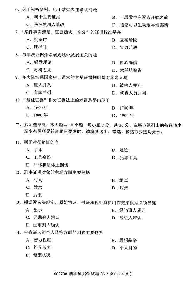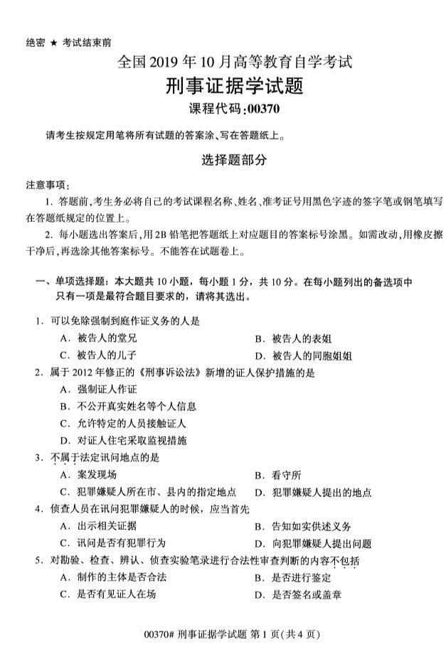全國(guó)2019年10月自考00370刑事證據(jù)學(xué)試題