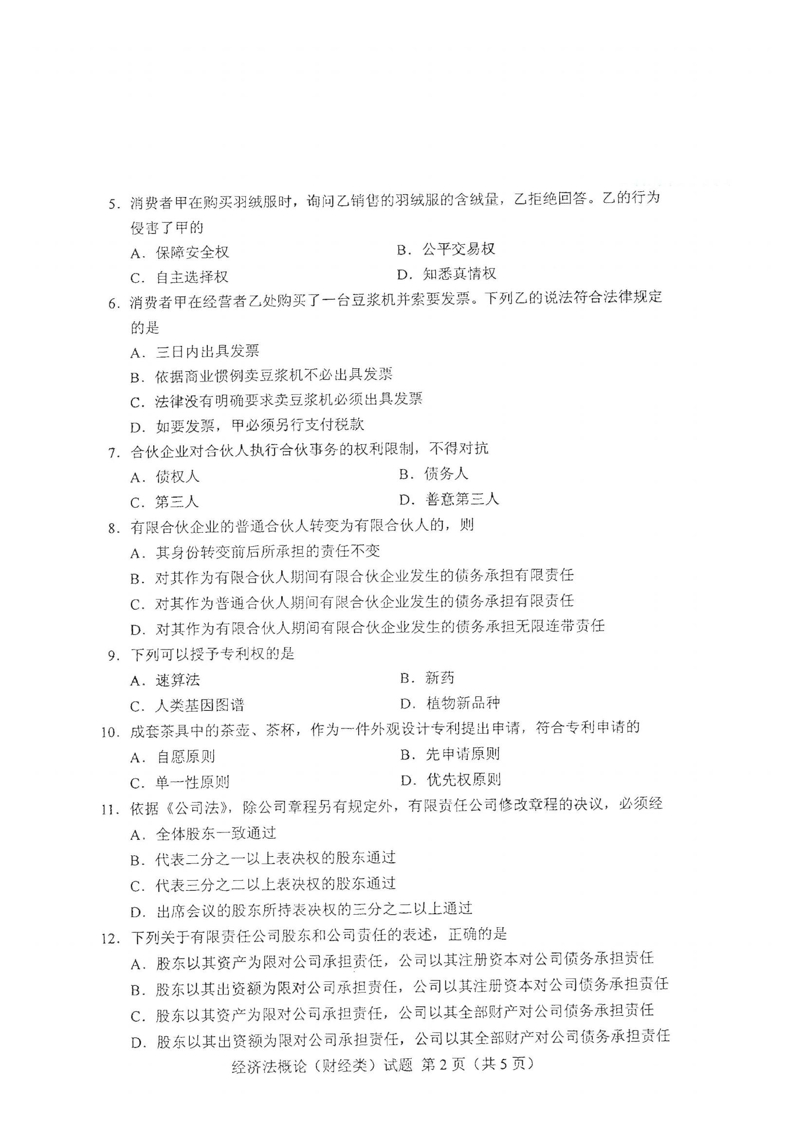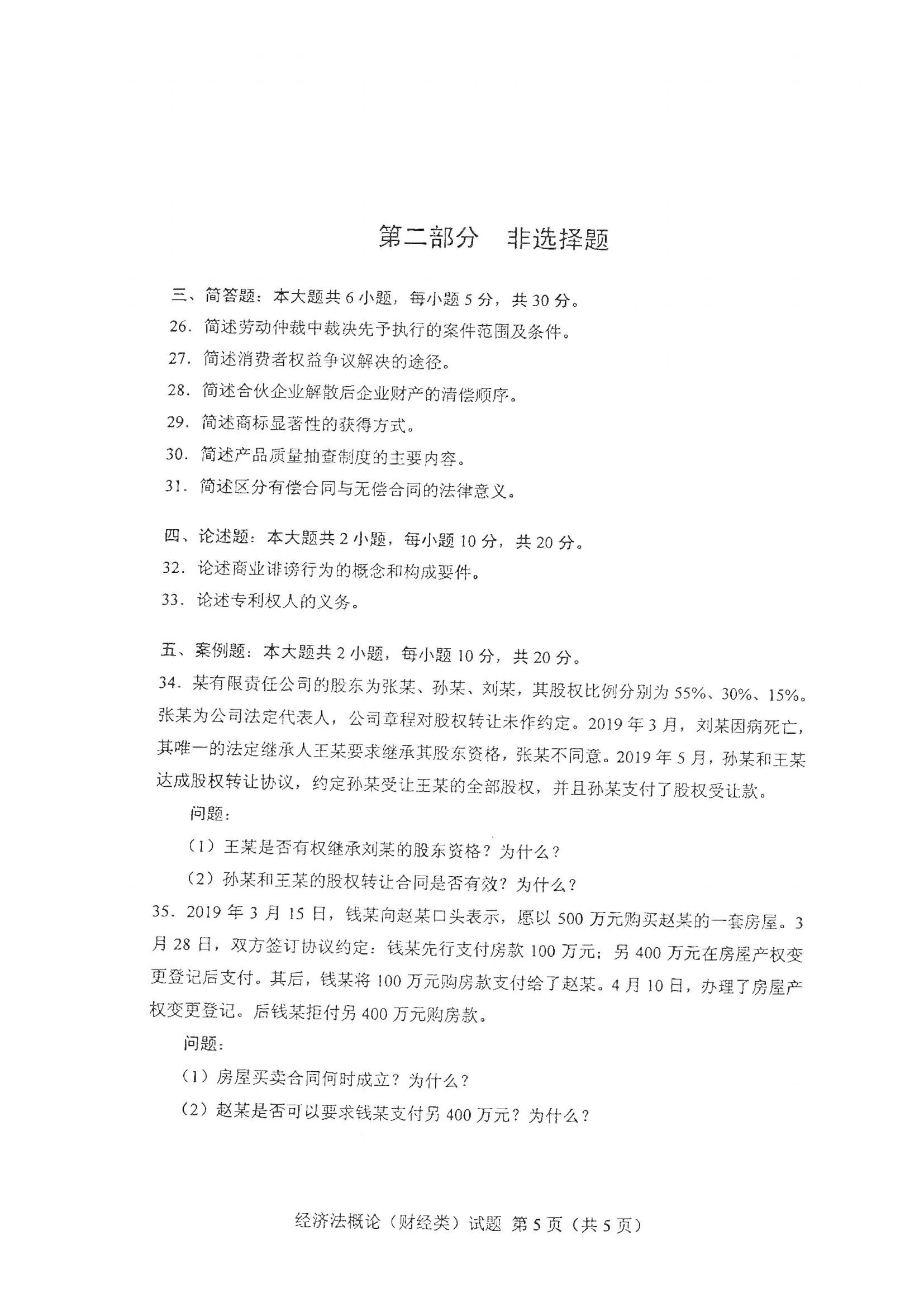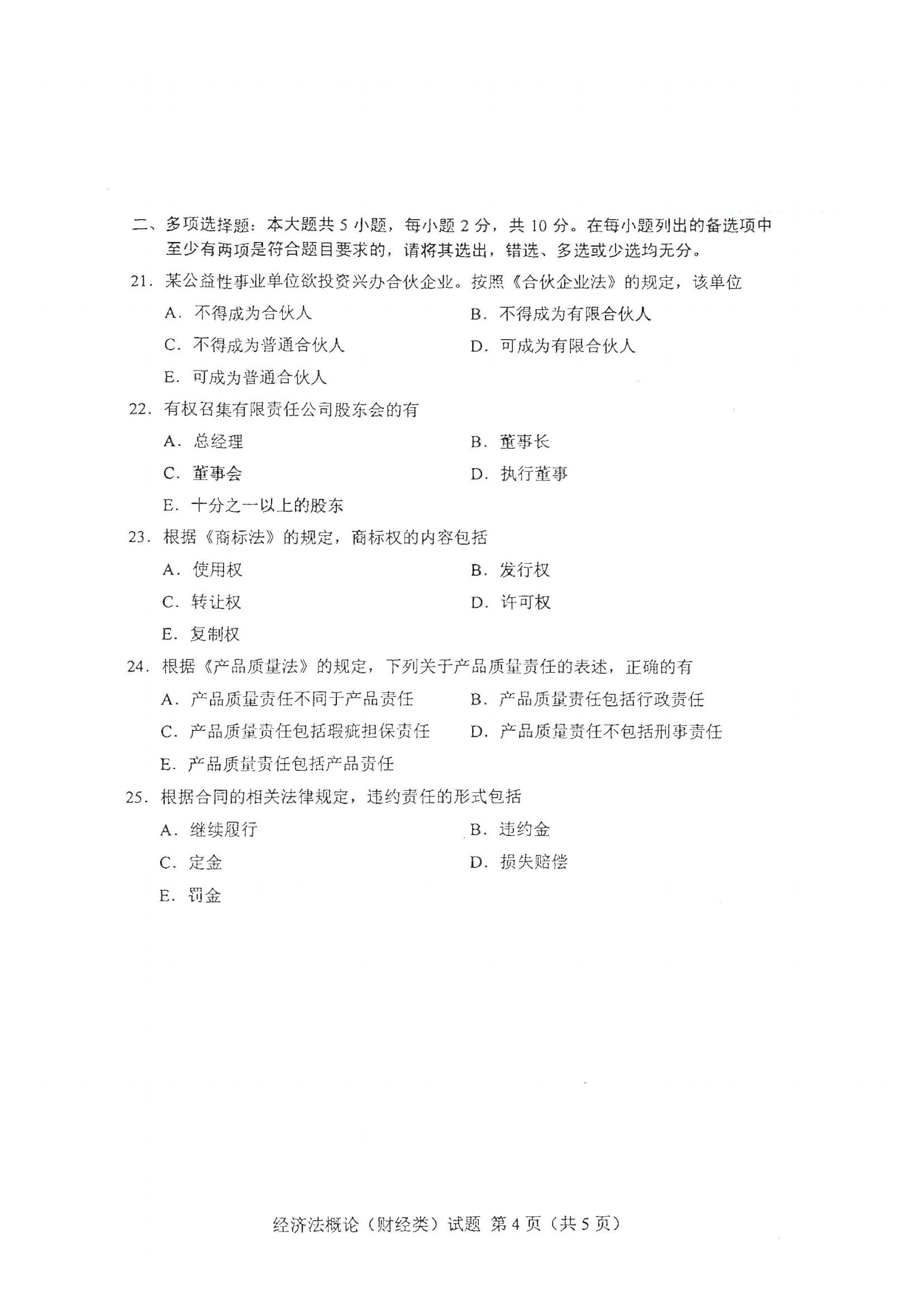 2021年4月江西自考00043經(jīng)濟(jì)法概論(財(cái)經(jīng)類)真題試卷