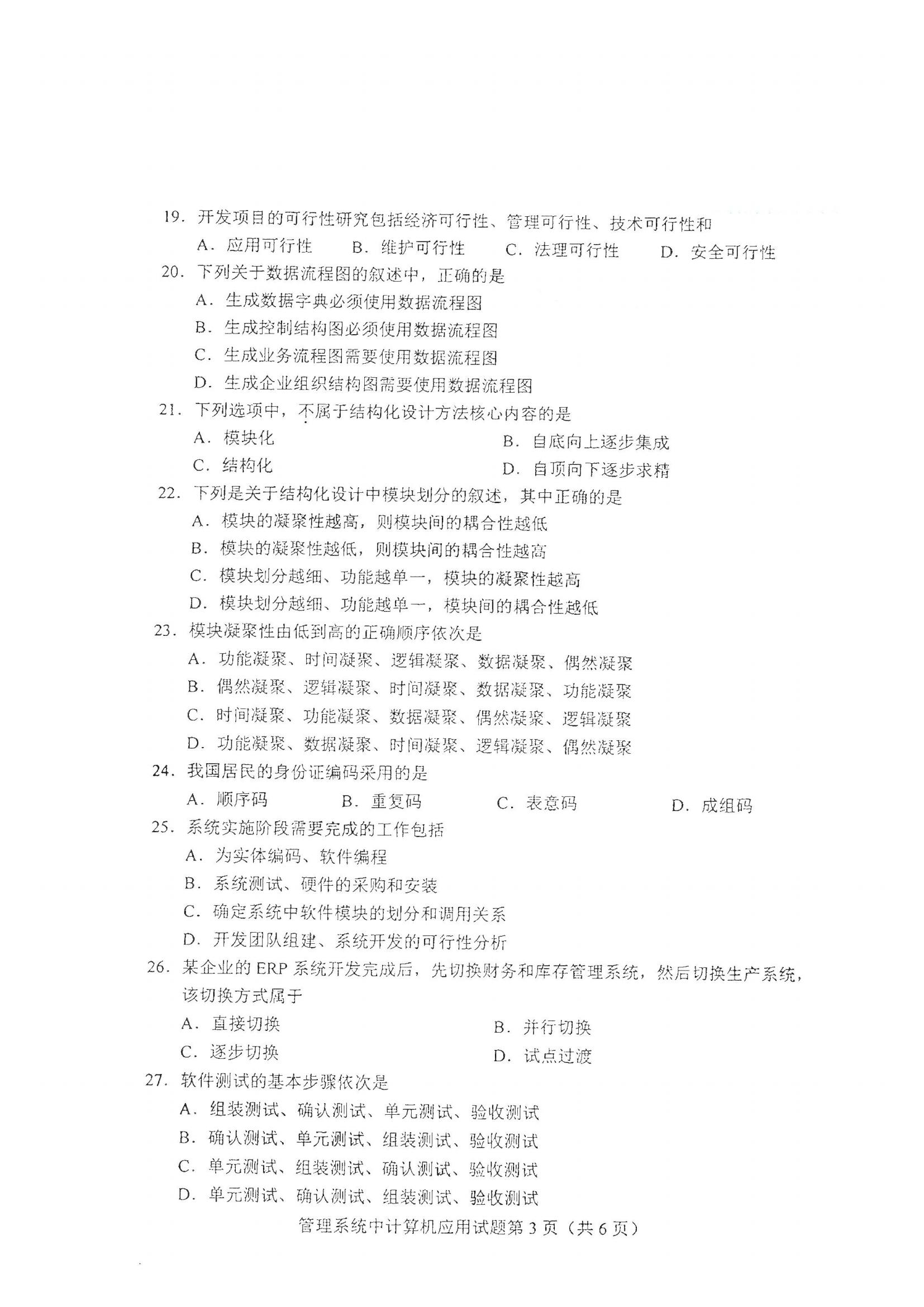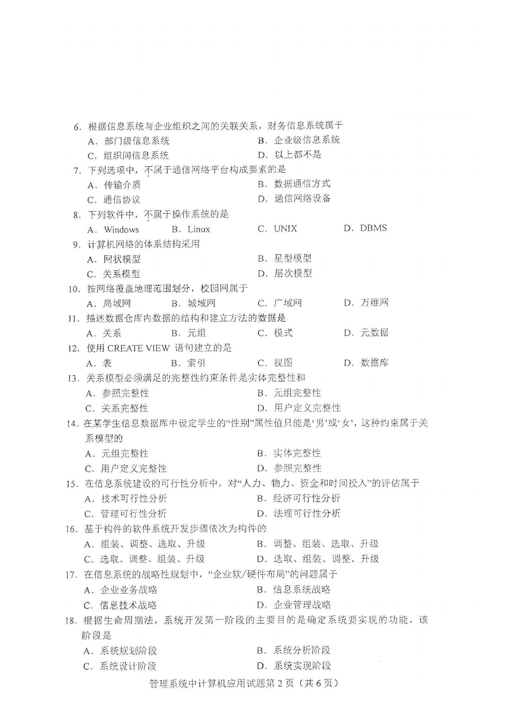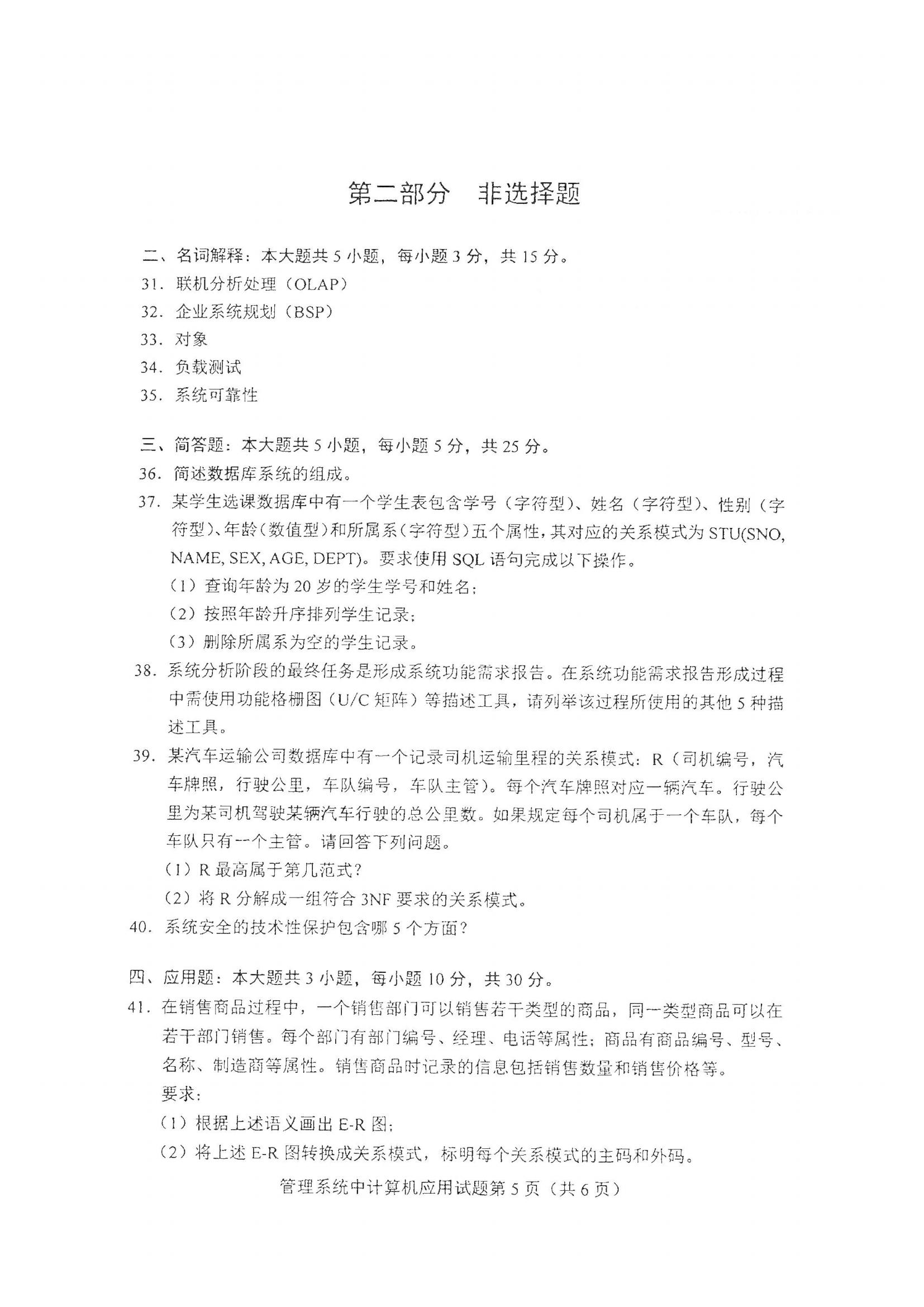 2021年4月江西自考00051管理系統(tǒng)中計算機應用真題試卷